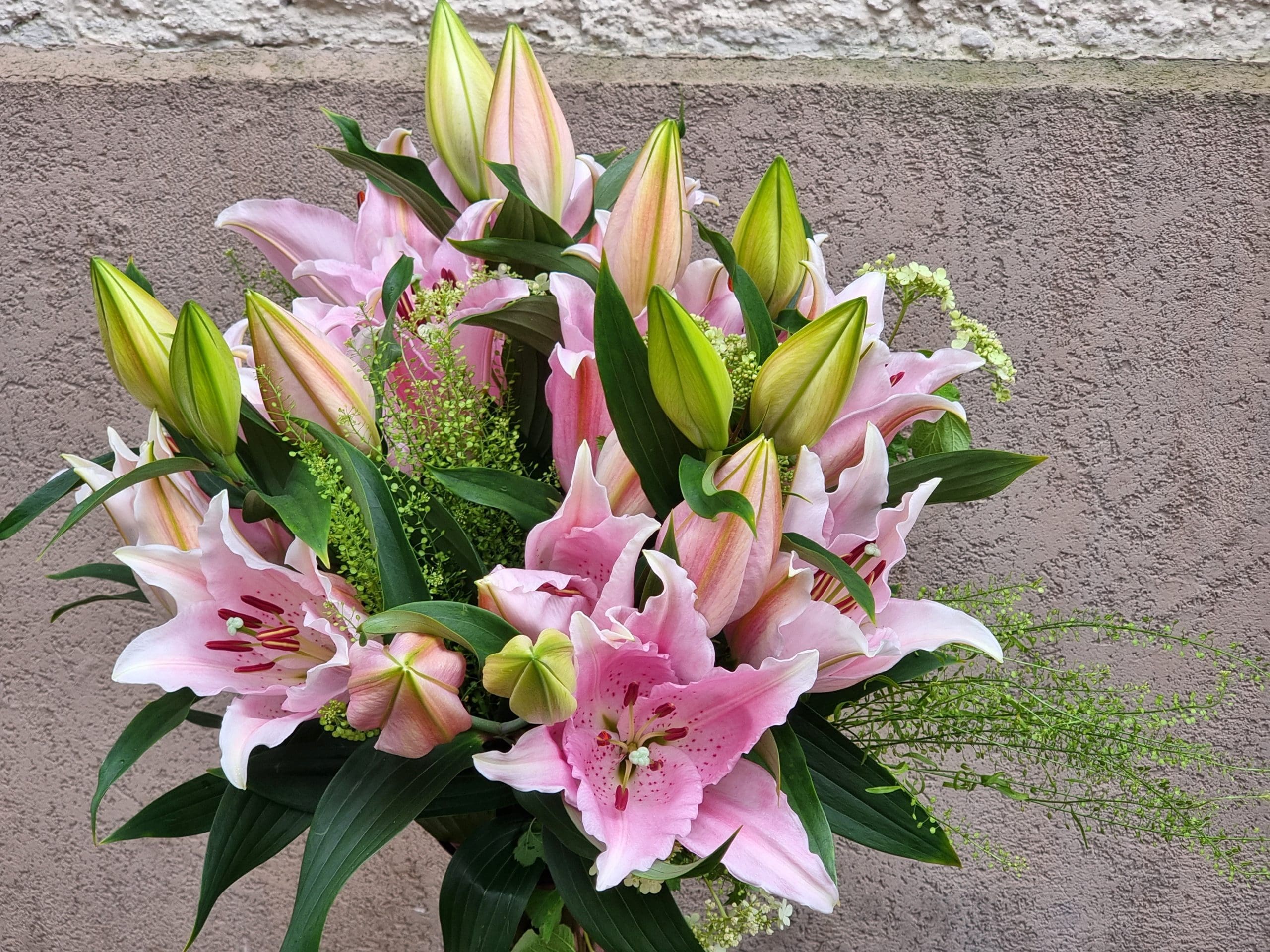 Joli bouquet de lys qui égayera votre maison. C’est une fleur qui est livrée fermée pour vous laisser le temps de l’admirer jusqu’à son éclosion, et ainsi profiter de son parfum envoûtant.