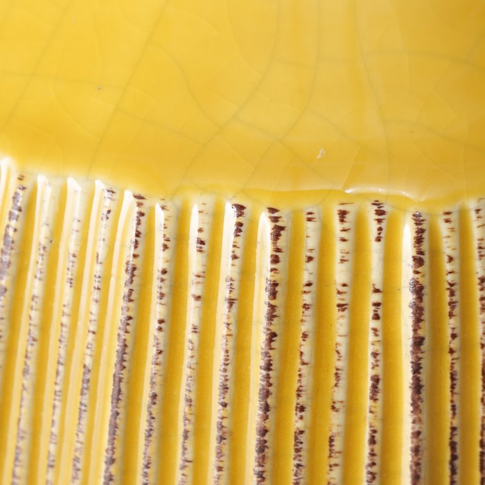 Joli vase en céramique jaune.